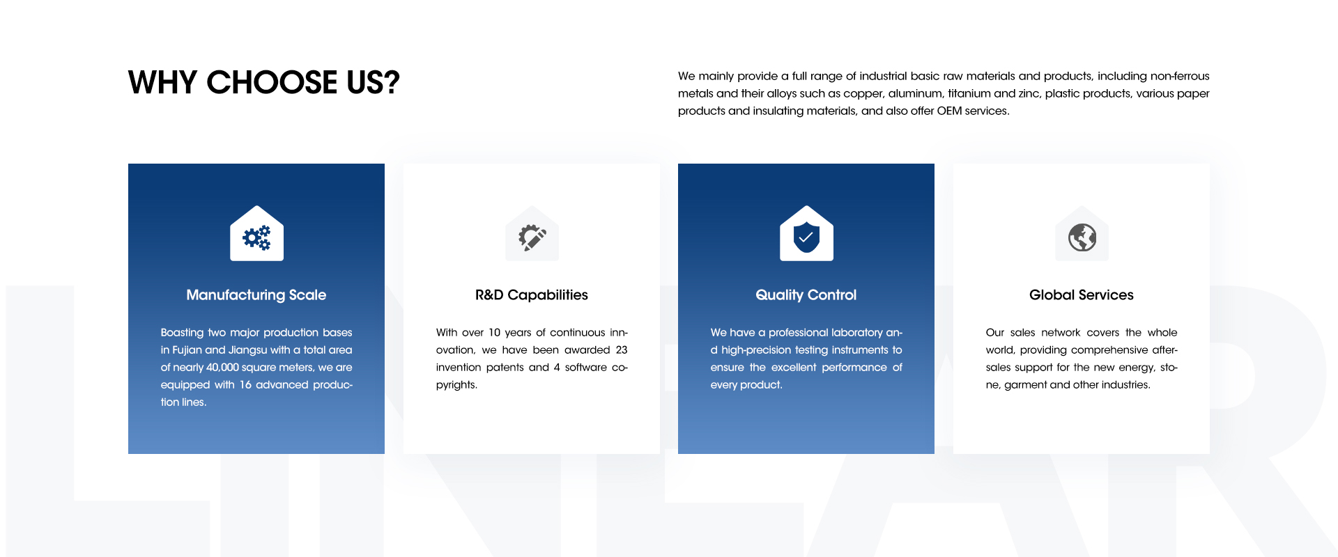 We provide customers with a full spectrum of services ranging from standard products to customized solutions. Leveraging two manufacturing bases, we